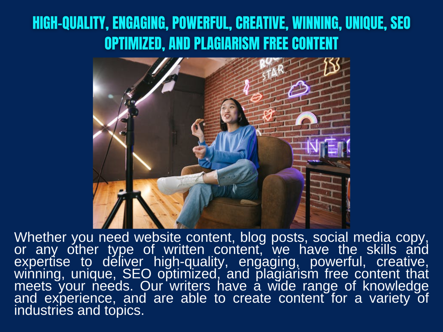 CREATIVE / WINNING POWERFUL / ENGAGING UNIQUE / SEO OPTIMIZED 100% PLAGIARISM-FREE WRITING book any of our product/service through UPWORK book any of our product/service through FREELANCER book any of our product/service through Fiverr book/win any of our product/service