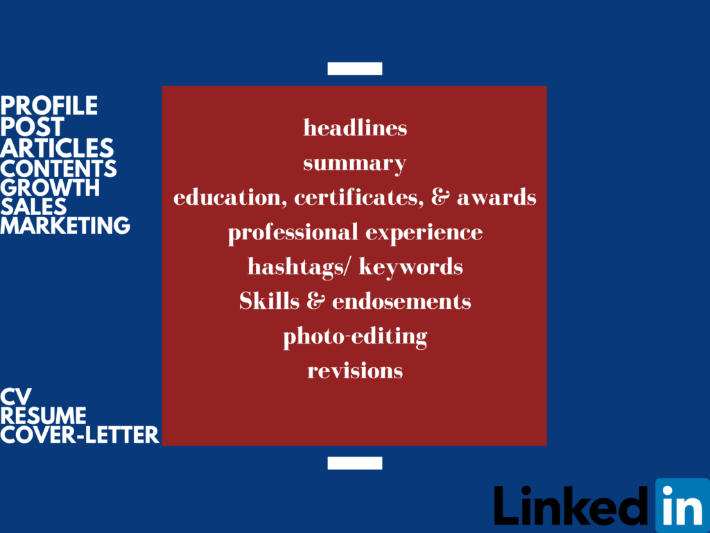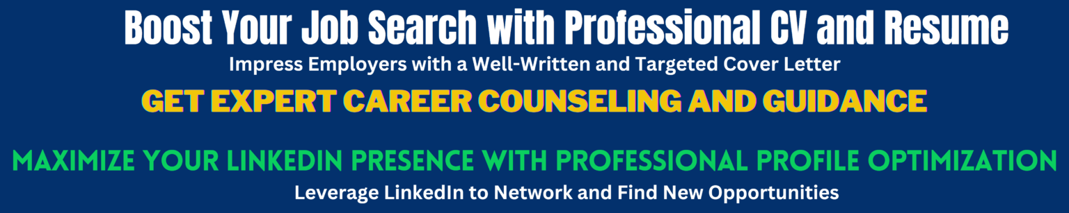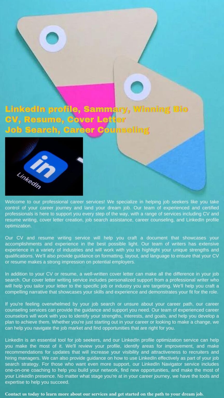 CV / Resume / Cover LetterLinkedin Profile Development Optimization book any of our product/service through UPWORK book any of our product/service through FREELANCER book any of our product/service through Fiverr
