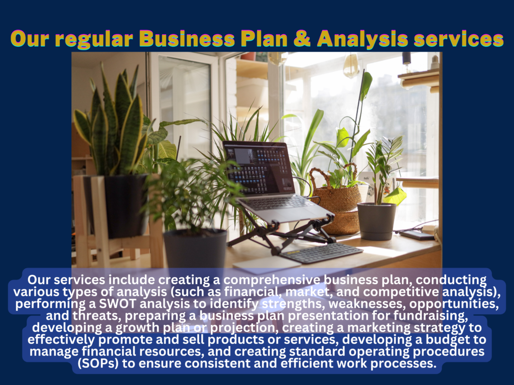 In-depth Market AnalysisDigital MarketingFundraising/Growth PlanBudgeting/Financial Plan book any of our product/service through UPWORK book any of our product/service through FREELANCER book any of our product/service through Fiverr Book/win any of our product/service