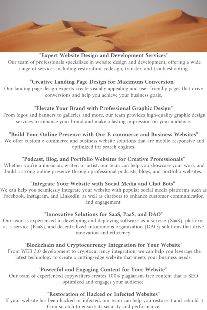 Website DeveloperRestoration / RedesignTransfer / Repurpose Book any of our product/service through UPWORK book any of our product/service through FREELANCER book any of our product/service through Fiverr
